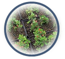 以放置在地表、或者埋藏在地面下的滴灌管進行灌溉,優點是省水且美觀,缺點則是不易維修,若滴灌口受到植物根系、雜物堵塞時難以察覺,且於翻土或挖掘時需小心避開滴灌管。若澆灌的區域較小時,可使用滲透管取代滴灌管。