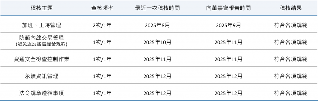 誠信經營暨永續發展相關之內部稽核