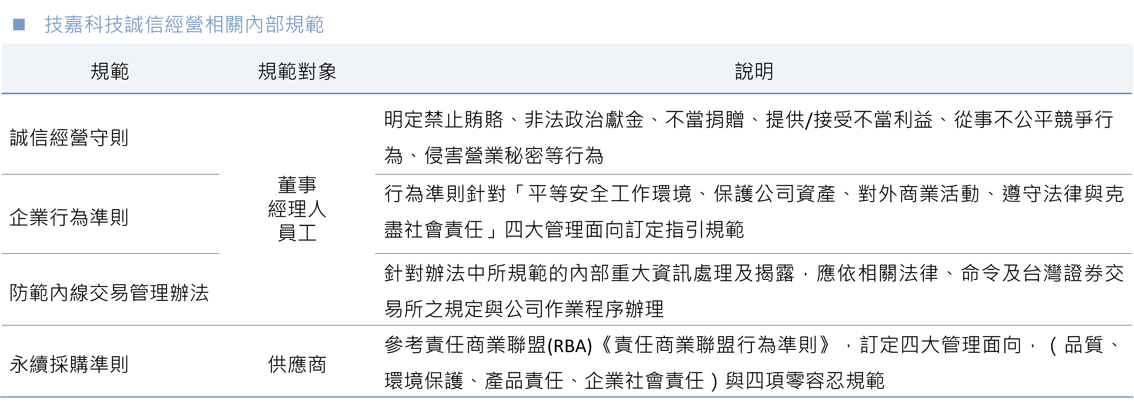 - 誠信經營與法規遵循