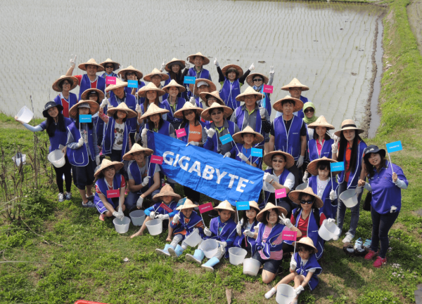 2018年春耕之際,技嘉科技再度舉辦「愛土地 護石虎」工作假期,大夥捲起褲管親手撿拾福壽螺,協助農民減緩福壽螺大軍的危害,有好的稻田生態環境、才有好的收成、農民有好的收成也才能為石虎生存環境保有一線生機。技嘉科技自2015年開始採購來自苗栗通霄鎮楓樹里的友善環境石虎米,並於2016-2018年親自來到社區參與石虎米的生產過程,了解友善農耕的意義,我們期許曾經參與活動的同仁,未來都能持續用實際行動,一起支持友善環境的產品與組織。